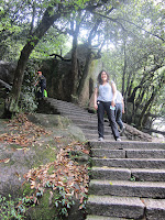 Once we got to the point where the tram left people it was once again ridiculously crowded. We were supposed to have lunch in a restaurant on top of the mountain, see some of the famous sights and come down the other side of the mountain to get a bus. Since we left a little late we didn't catch up to the group on top of the mountain. It was still really pretty, there were a few really famous scenic spots, but the crowds made it somewhat unpleasant.There was a giant line to walk to the other side and we got stuck waiting for about an hour and a half before we could walk across. People were really rude and kept cutting in line and the soldiers just stood around and didn't do anything about it. I was really disgusted that people were smoking in the line... I mean come on it is supposed to be a nature hike. In the mean time it started raining a bit. We both caught colds afterwards...